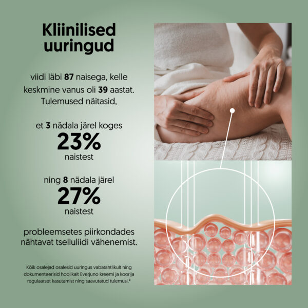 Absoluutselt armastan seda kreemi ja koorija duot. Nahk on uskumatult pehme ja tselluliidi välimuses on näha selget erinevust. Kasutan kreemi iga päev reitel ja tuharatel ning koorijat kord nädalas.